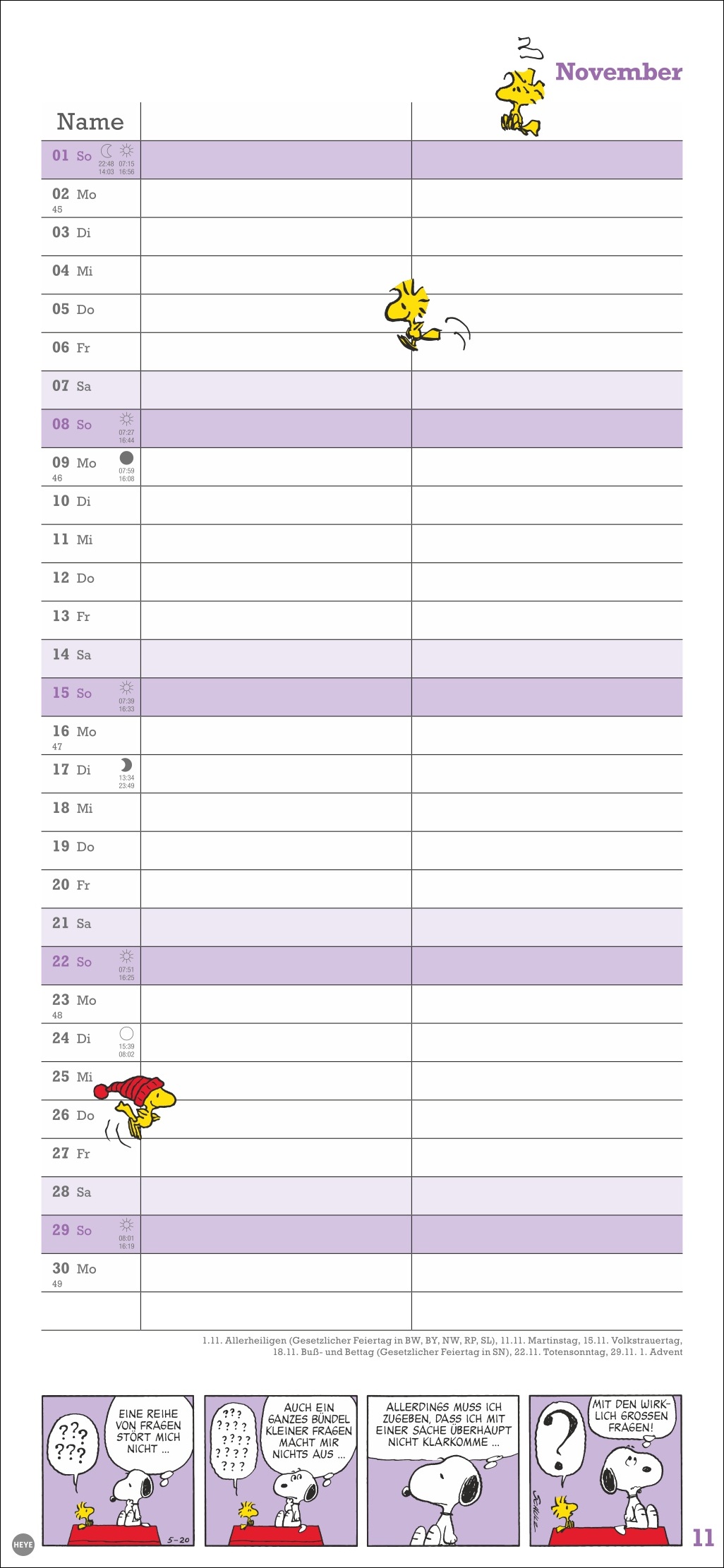 Planen und Lächeln Sie gemeinsam mit dem neuen Peanuts Planer Wir zwei 2026. Dieser liebevoll gestaltete Wandkalender begleitet Sie Monat für Monat mit zwölf der schönsten "Best-of" Cartoons von Snoopy und Woodstock.
